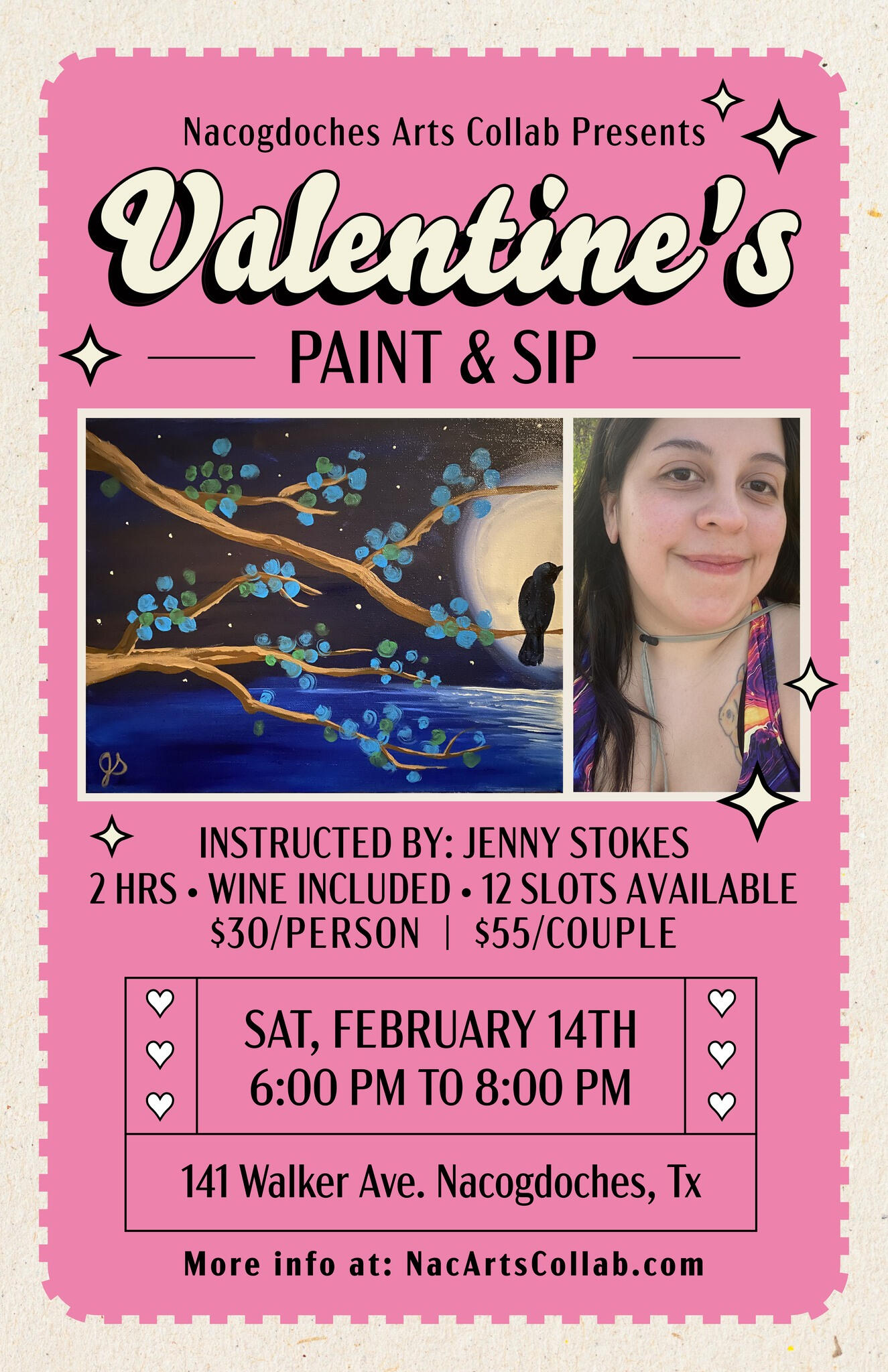 Follow along with a guided tutorial led by studio artist Shelby Wardlaw of Wild Earth Studio as you sip craft beverages. Perfect for a date night or a night out with friends! Tickets are $25 per person and covers all material costs (drinks not included).